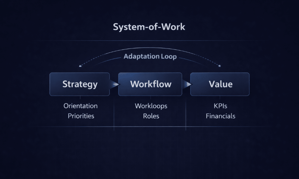 AI unlocks its greatest value along adaptive end-to-end processes. Our System-of-Work translates this insight into a actionable framework — clearly structured, measurable, and governance-ready.